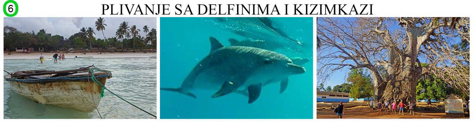 Ranom zorom krećemo na sam jug ostrva u ribarsko selo Kizimkazi, gde ćemo nakon kratke vožnje čamcem sa plaže nadomak sela, imati priliku da plivamo sa jatima delfina u otvorenom okeanu… jedna od najuzbudljivijh stvari ove avanture. Nakon toga imamo kasni doručak u lokalnom restoranu i uživamo u predivnom okruženju Kizimkazi plaže na kojoj se ogromni baobabi mešaju sa palmama i plavetnilom okeana.
