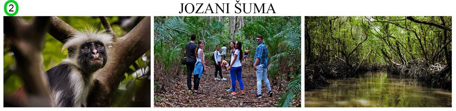 Jozani šuma. jedini nacionalni park na Zanzibaru, dom endemske vrste Colobus majmuna i pravo mesto za ljubitelje prirode. Kraci treking po prasumi i poseta mangrovoj mocvari.